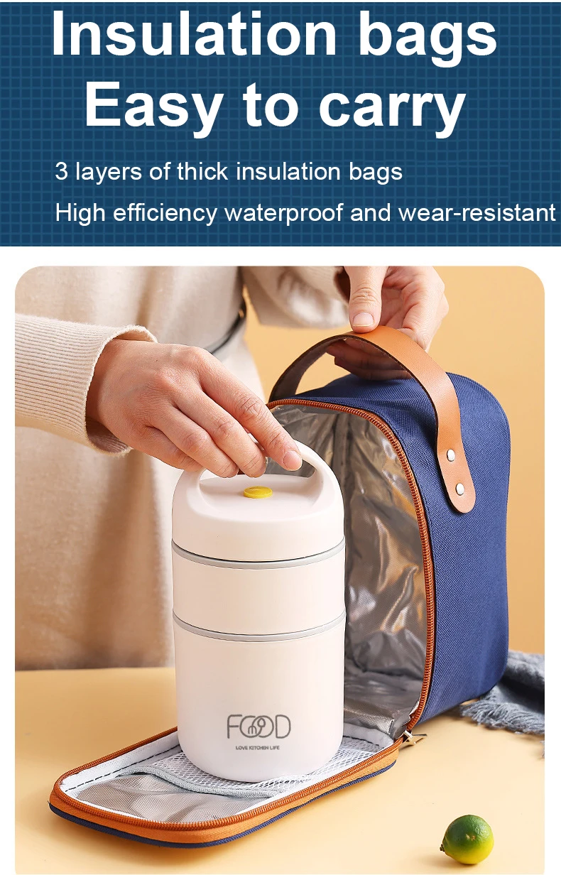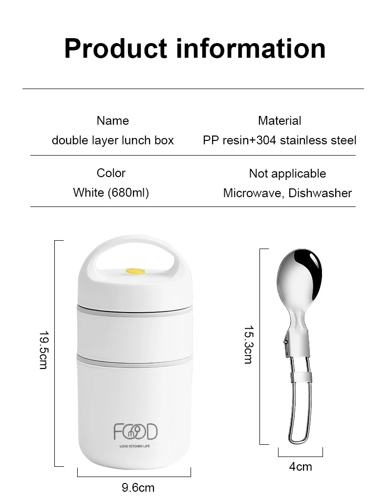 2. The lunch box is a double-layer hollow design, heat insulation, anti-scalding and not hurting hands