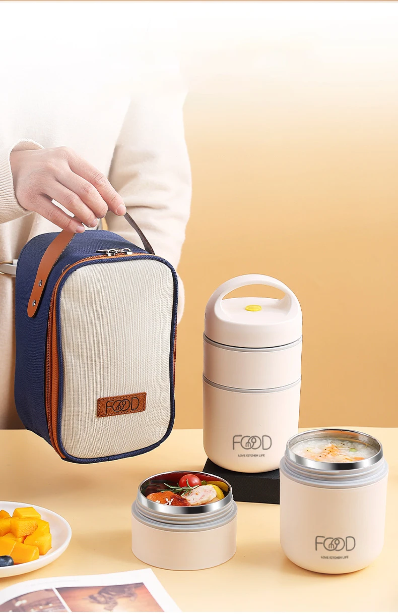 304 Stainless Steel Vacuum Thermal Lunch Box Insulated Lunch Bag Food Warmer Soup Cup Thermos Containers Bento Box for Students