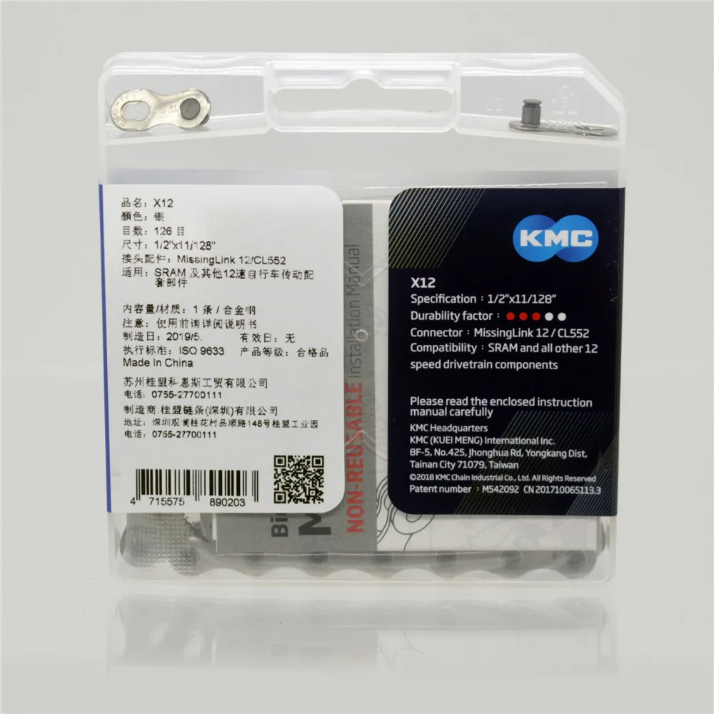 The KMC X12 Silver is silver in color, includes a missinglink connector, and is compatible with SRAM and Campagnolo 12-speed drivetrains.