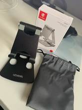 Product true to description. I arrive in Spain in just over two weeks, well packed in its original box and on padding. This mobile phone folding stand is made entirely of aluminium. It is very light and very compact when folded. A fabric cover is also included for transport. Its measurements are 70*65mm with a height of 90mm. Both hinges feel strong and offer resistance. They hold the weight of any current phone and offer a multitude of configurations. On both its base and smartphone support area, there are rubber patches that prevent the contact surfaces from sliding or scratching. I 've tried it with 5,2 "and 6,5" phones and it works fine. Only when placing it in a vertical position must be careful to tilt it well so that the center of gravity does not cause it to overturn to minimal touch. There is plenty of space for the charging connector and that the microphone or lower speaker is not covered.
