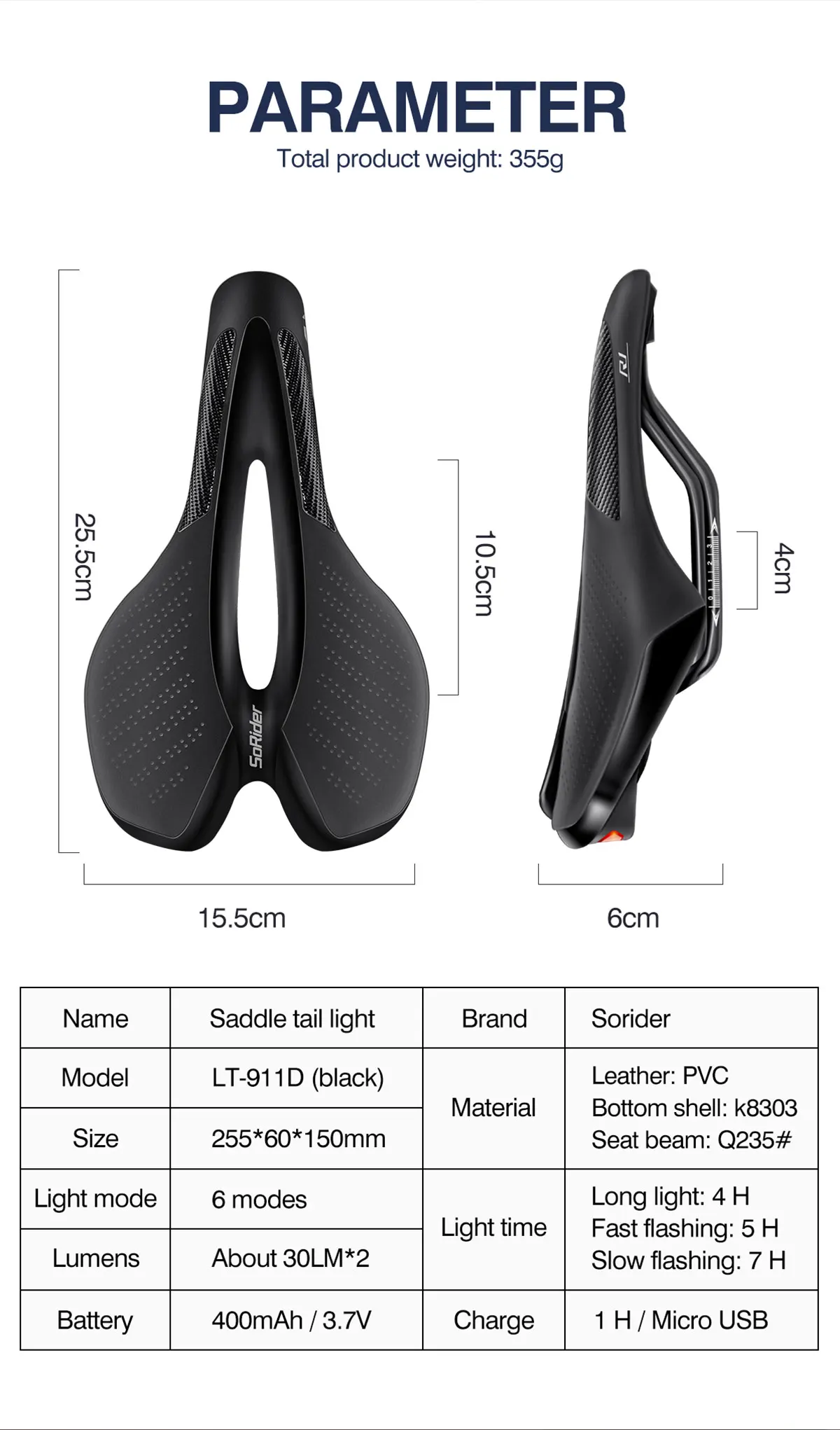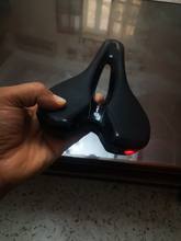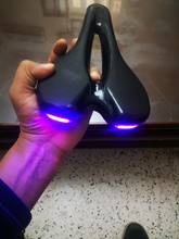 Após duas pedaladas que, somadas ultrapassam 230km posso afirmar que o selim é confortável na medida. Ao sentar, não se escorrega. As luzes funcionam (usei basicamente vermelho/roxo) e é possível ser visto a distância. Tenho 110kg, 1,84m de altura. Isquios de 12,5cm. A solução para recarregar foi deixar uma extensão já conectada nele e a ponta USB na bolsa de selim. Recarrego com Power bank antigo, mas se usar uma extensão de USB vai funcionar também. RECOMENDO!
