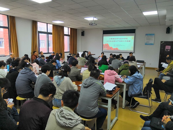 2019年5月7日下午,必一运动官网在明德楼普惠金融工作室召开2019年全面从严治党工作部署会。在家的领导班子成员、全体教职工参加会议,党委书记徐梅主持会议。