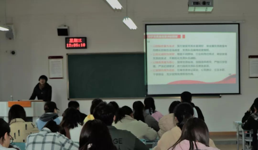 课上,王晓娟老师分别从“党组织关系”和“发展党员流程”两个方面给学员们进行讲解。提高新发展党员质量是落实全面从严治党的一项重要举措;规范做好发展党员工作是提高新发展党员质量的重要基础;严格遵循发展党员工作流程是提高新发展党员质量的必要保证。王晓娟老师希望同学们通过此次培训明确发展党员程序,严肃对待新时期党员发展和管理工作中出现的问题和现象。