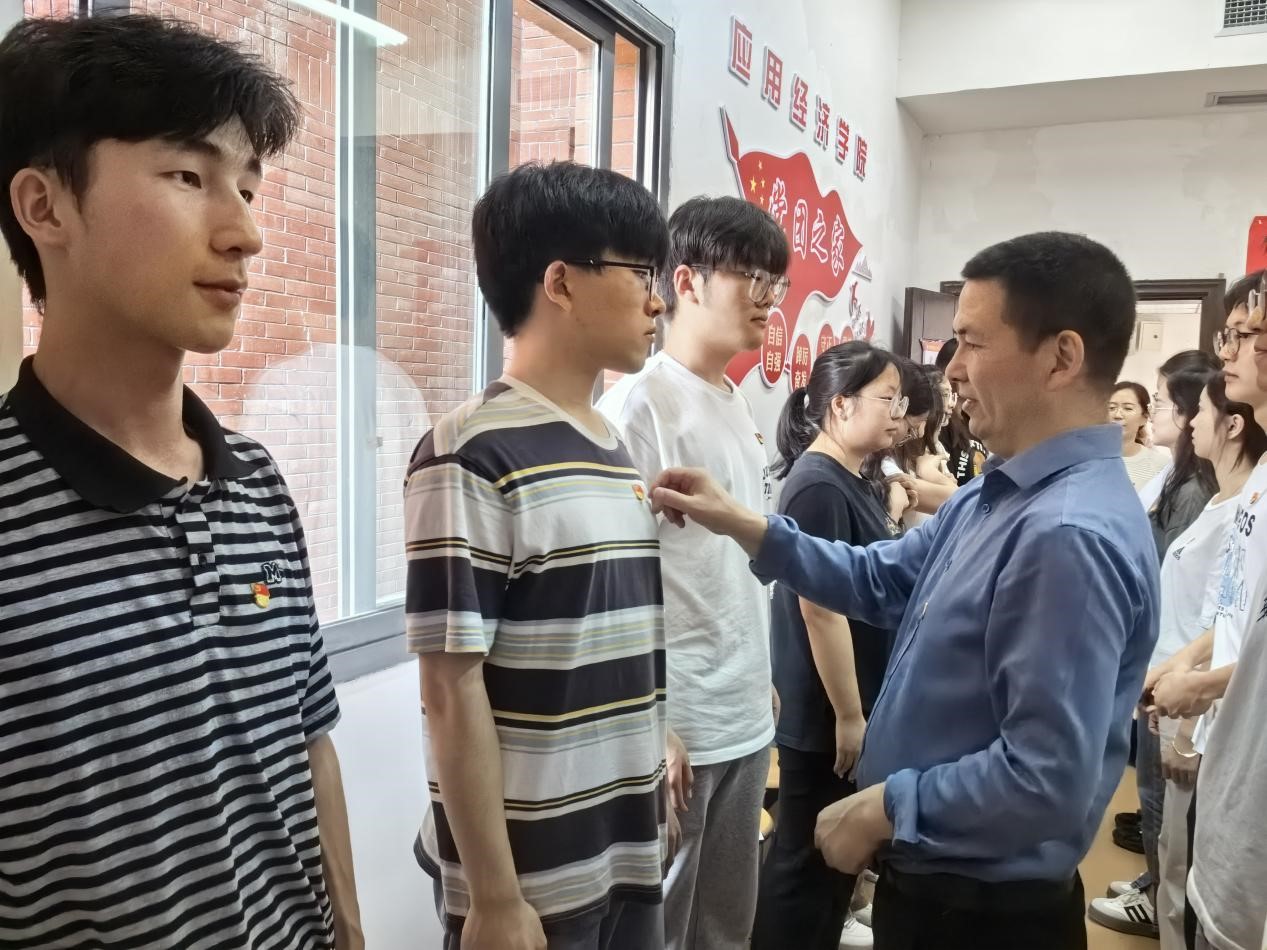 仪式开始,全体成员起立,奏唱国歌。向岚宣读2024年新发展党员名单,接着三位领导一起为15名新发展党员代表佩戴党徽。随后,在姜友文的带领下,全体成员面对鲜红的党旗,庄严地举起右手宣誓,“我志愿加入中国共产党,拥护党的纲领……”,铮铮誓言,是对党忠诚、绝不叛党的庄严承诺;字字铿锵,是为共产主义奋斗终身的坚定信念。