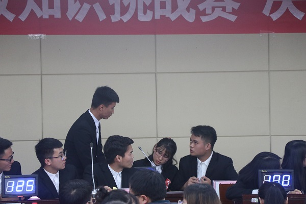 决赛共有6支队伍参加,分为必答题、抢答题、风险题三个环节。现场气氛热烈、答题踊跃,各队士气高昂,志在必得,其中抢答题环节让决赛进入白热化阶段。风险题阶段,现场气氛更加紧张,观众们的心情也跟着参赛队伍的回答而波动。老师的专业点评也让参赛选手收获良多。