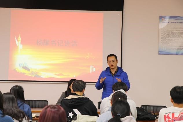 杨耀围绕作为员工干部应如何履职尽责,向团支书提出工作要求。他指出,一是要提高思想觉悟,端正工作态度;二是要找准工作定位,明确工作职责,提高工作能力;三是要扎实作风,增强服务意识,积极主动地在同学中开展工作。