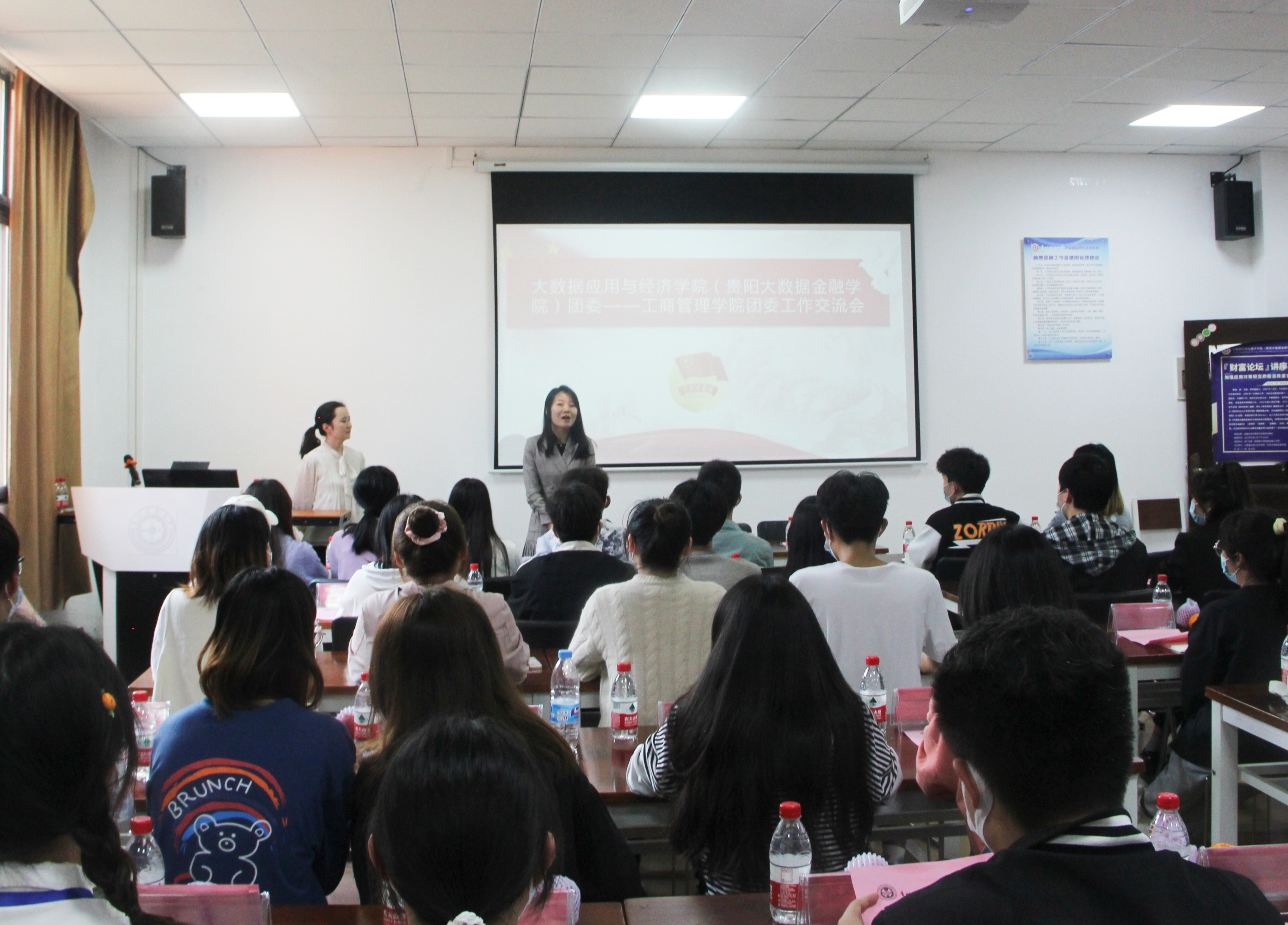 3月18日下午,必一运动官网(贵阳大数据金融公司)团委——工商管理公司团委工作交流会活动在明德楼普惠金融教室顺利举行。公司团委书记潘凡、工商管理公司团委书记高艳妮及两院团委、员工会、青年志愿者协会骨干成员出席此次活动。