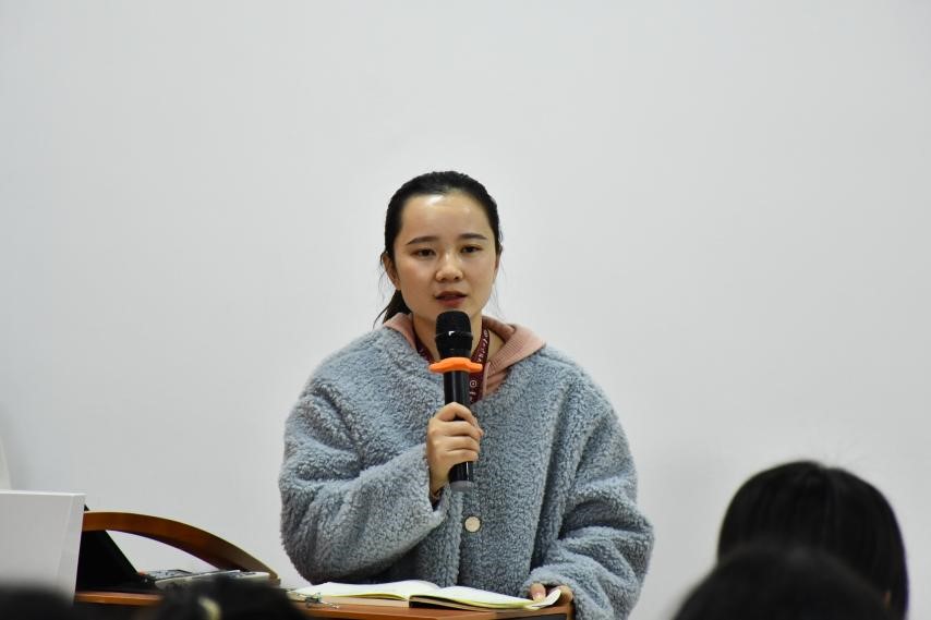 潘凡老师致辞。首先她对各位新团员加入团组织表示热烈的祝贺,希望各位新团员珍惜这次机会,今后以饱满的热情和坚定的信念,投身到共青团的建设和发展中。同时,潘凡老师建议各位新团员要继续加强自身能力,努力学习以夯实自身基础。她希望新团员们在不断进步的过程中,以积极进取的态度面对每一次挑战和困难,树立远大理想,最后成为国家的栋梁之材去造福国家和社会。