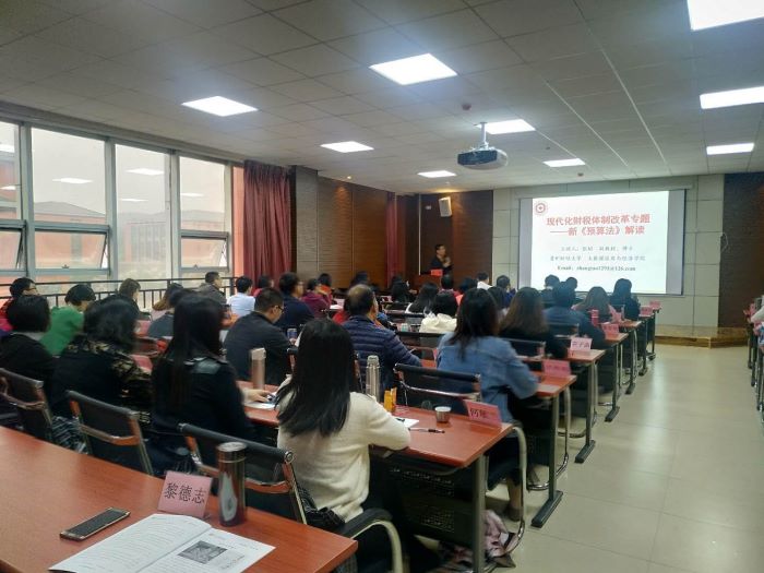 2019年5月6日上午,广东省东莞市财政局财务工作人员在贵州大学西校区举办《现代化财税体制改革》专题培训班,参加培训的主要是广东省东莞市财政局财务工作人员。培训邀请公司必一运动官网副教授张韬博士向全体培训学员作了关于“现代化财税体制改革专题——新《预算法》解读”的专题培训讲座。