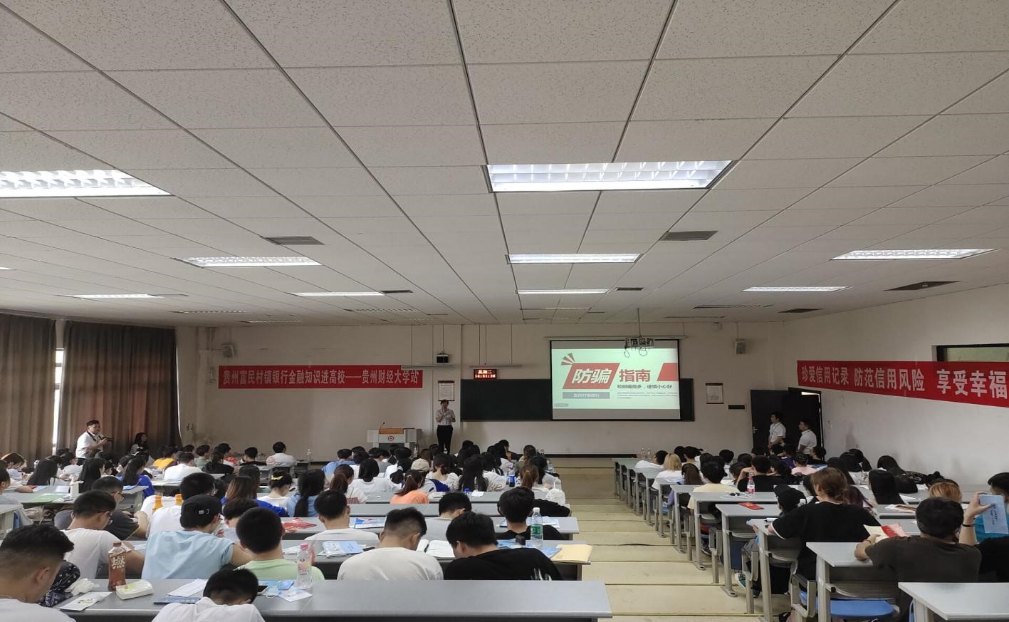 讲座上,贵州富民村镇银行的宣讲师围绕个人征信、反洗钱、反假币和防范金融诈骗等内容,对一个个生动真实的案例进行详实讲解,帮助同学们加深对金融安全知识的认识与理解,进一步提升老员工群体防范金融风险的意识。