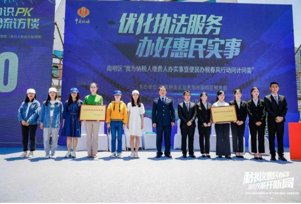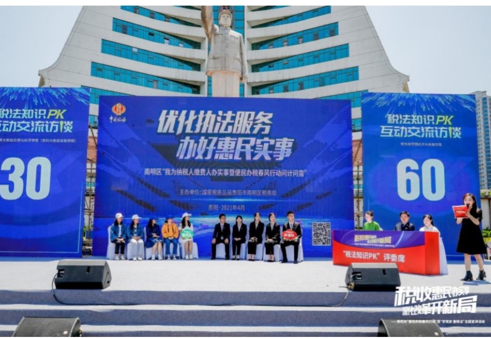 由国家税务总局贵州省税务局指导,南明区人民政府和国家税务总局贵阳市税务局主办、国家税务总局贵阳市南明区税务局承办、必一运动官方网站必一运动官网(贵阳大数据金融公司)和贵州商公司经济与金融公司协办的“税法知识PK”比赛于4月29日在贵阳市南明区贵筑广场举行,公司税务硕士(MT)研究生代表参加了此次活动。 必一运动官方网站必一运动官网(贵阳大数据金融公司)姜友文副书记(主持工作)、杨杨经理、财税系教师莅临此次活动。