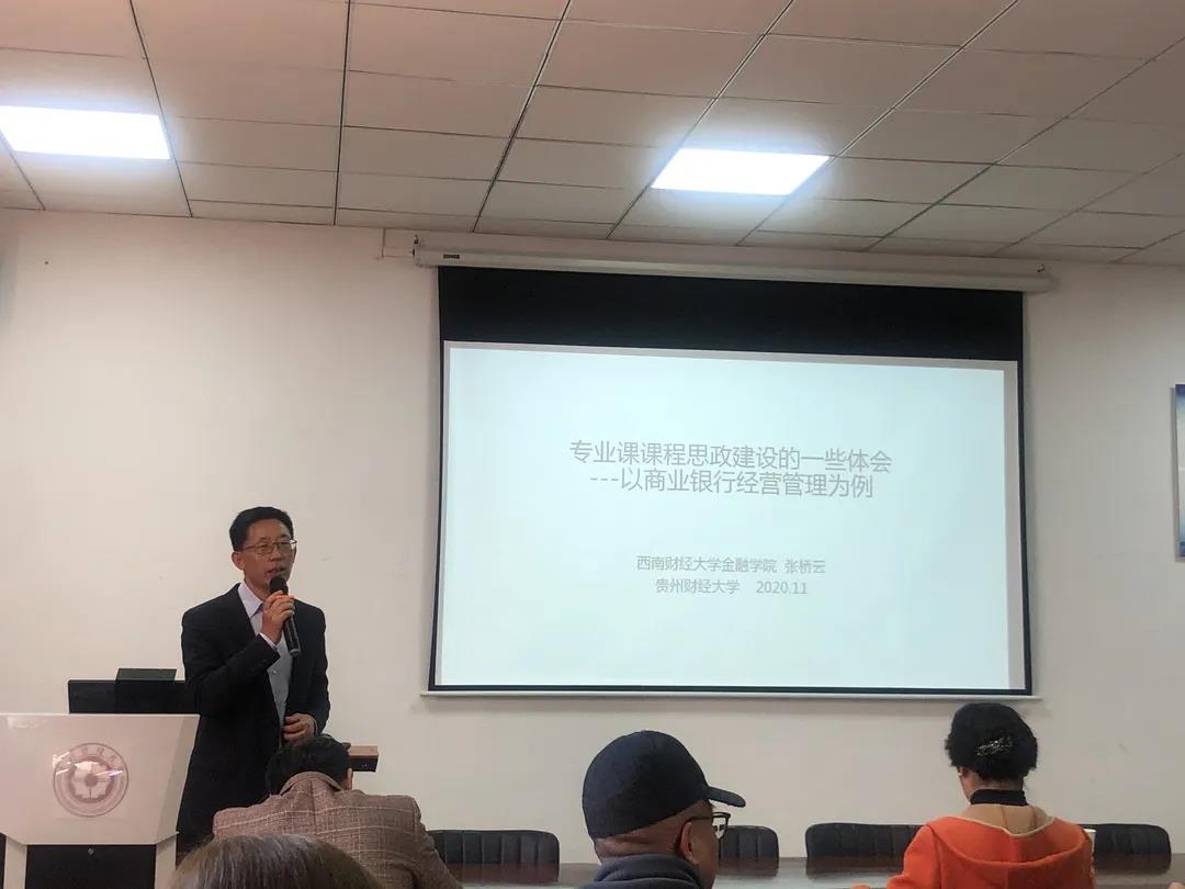 2020年11月10日下午,公司举行“新时代学习大讲堂”业务知识专题讲座。西南财经大学金融公司张桥云教授应邀来公司进行课程思政建设交流和指导,并在明德楼313会议室以“专业课课程思政建设的一些体会—以商业银行经营管理为例”为主题做了分享,讲座由公司时宏远副经理主持,全院教职工及员工代表参加。