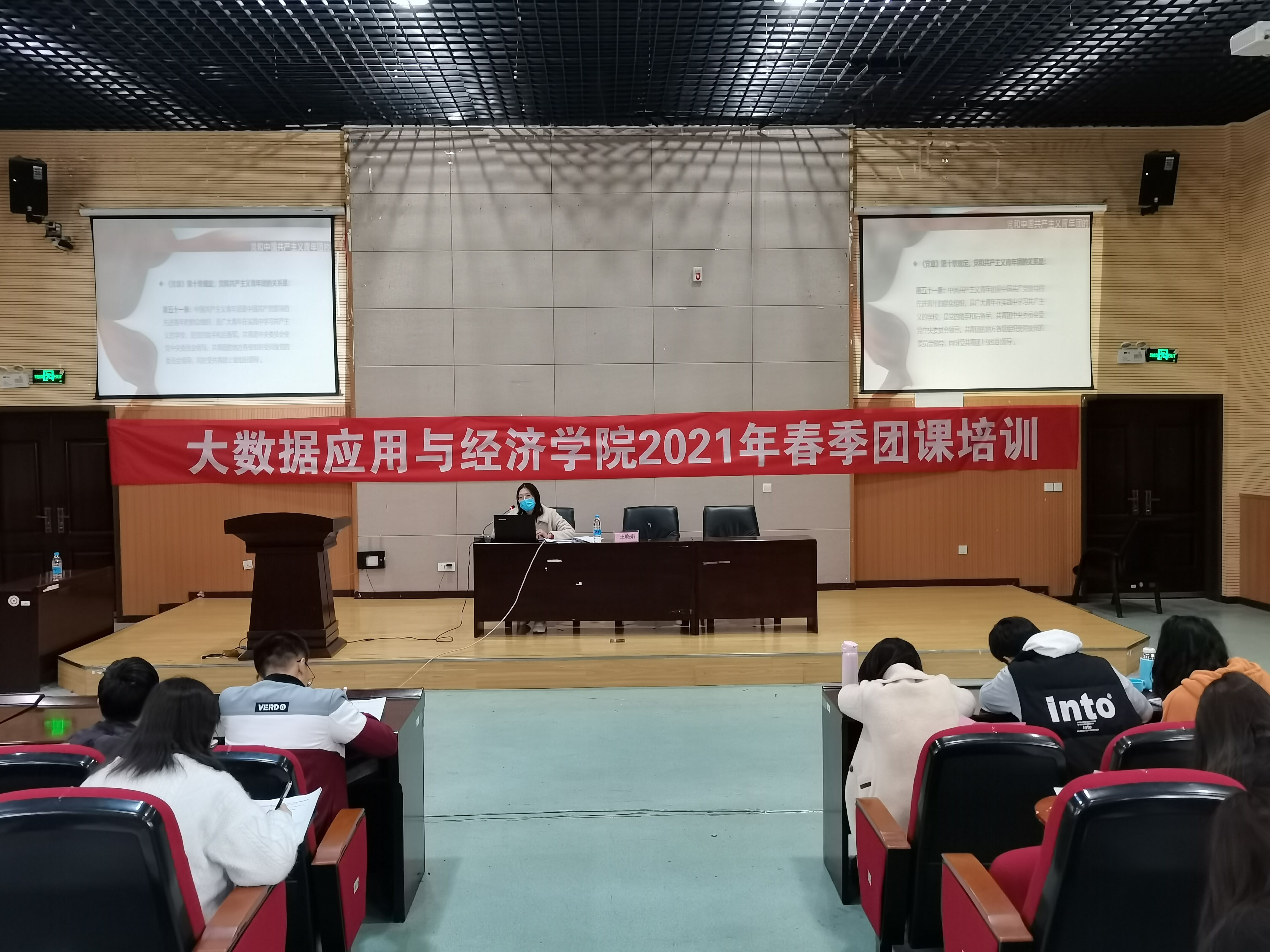 2021年4月9日中午,公司王晓娟老师在崇德楼一楼报告厅为春季团课培训班学员讲授“党的助手和后备军”专题团课。