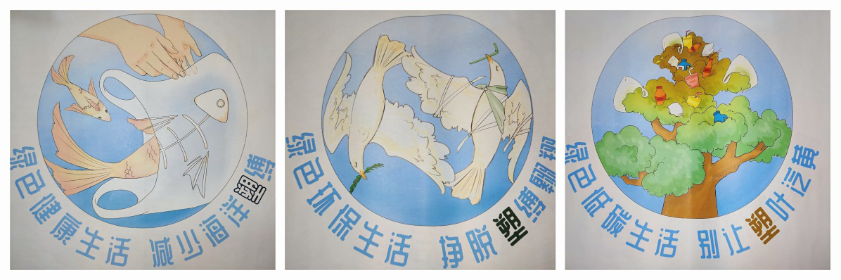 本次比赛的主题是宣扬环保理念,参赛作品以图画与文字相结合的形式宣传环保理念,作品图案简洁,含义明确,色彩鲜明。在线上线下相结合的形式中,同学们充分发挥了自身优势,创作出优秀作品。