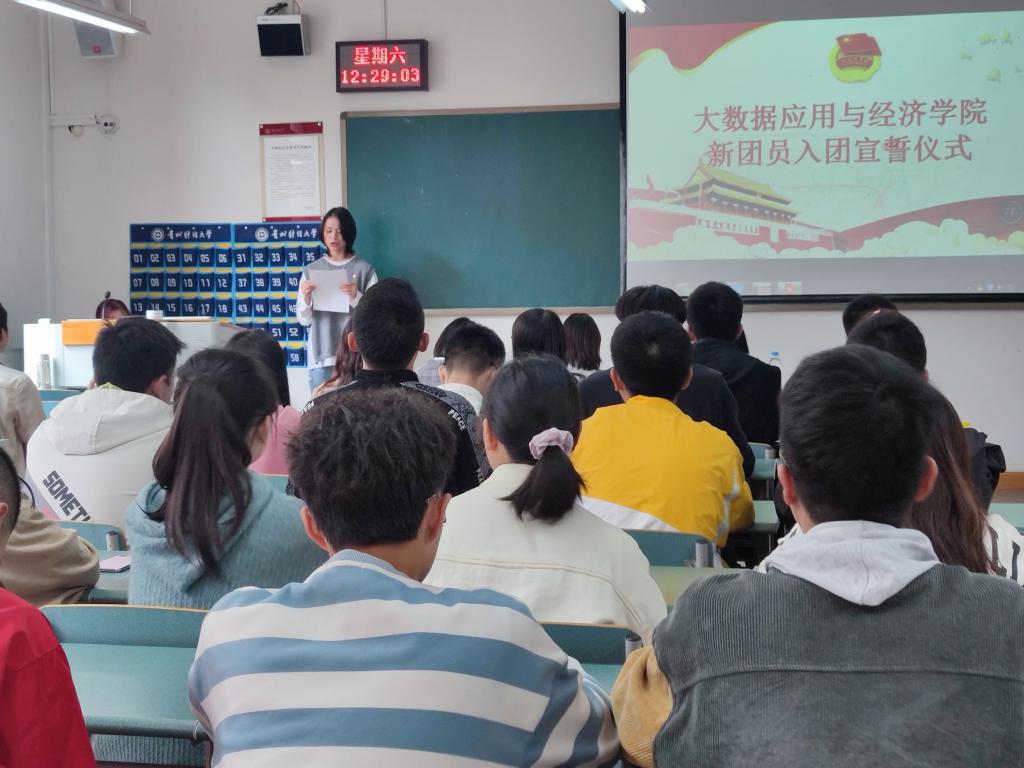 接下来,黄忠莉副书记向本次入团的新成员们表示祝贺与欢迎,并希望各位新团员学好科学文化知识,同时鼓励大家树立伟大的目标理想,争做有担当、有抱负的青年。随后,在黄书记的带领下全体起立、右手握拳,手举过肩,庄严宣誓。