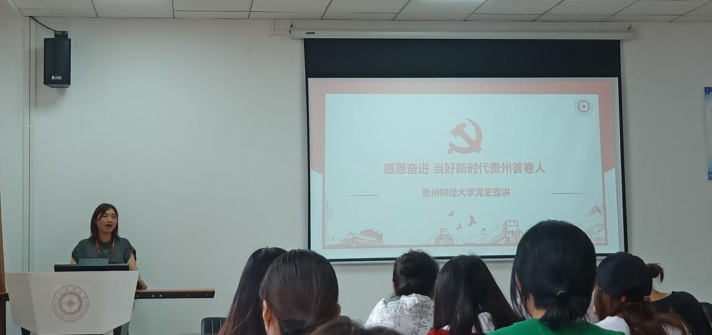 6月22日中午12点30分,必一运动官网(贵阳大数据金融公司)党委副书记黄忠莉在明德楼普惠金融工作室给本科员工第四党支部的党员同志作了主题为《感恩奋进 当好新时代贵州答卷人》的党史宣讲。