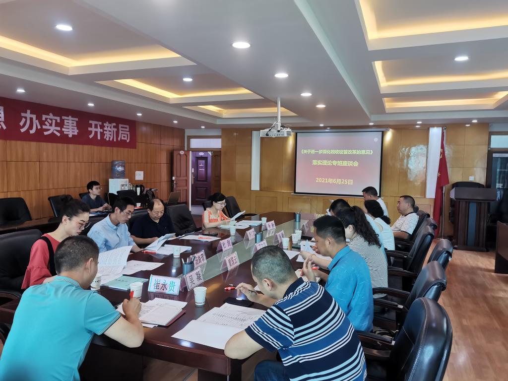 6月25日,《关于进一步深化税收征管改革的意见》落实理论专班座谈会在公司鹿冲关校区行政楼314会议室举行。