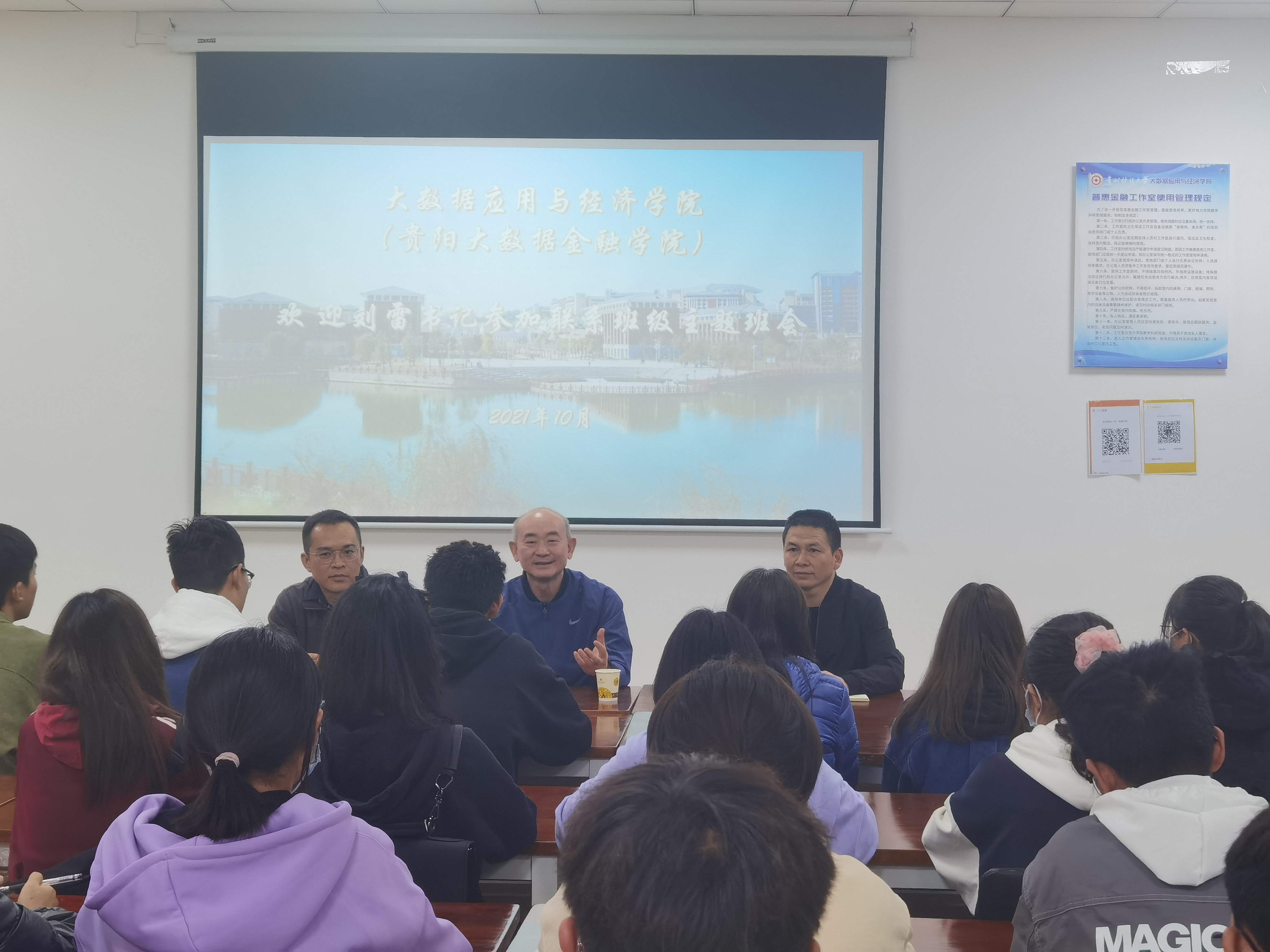 10月26日下午,公司党委书记刘雷到必一运动官网(贵阳大数据金融公司)参加联系班级主题班会,并走访员工寝室。