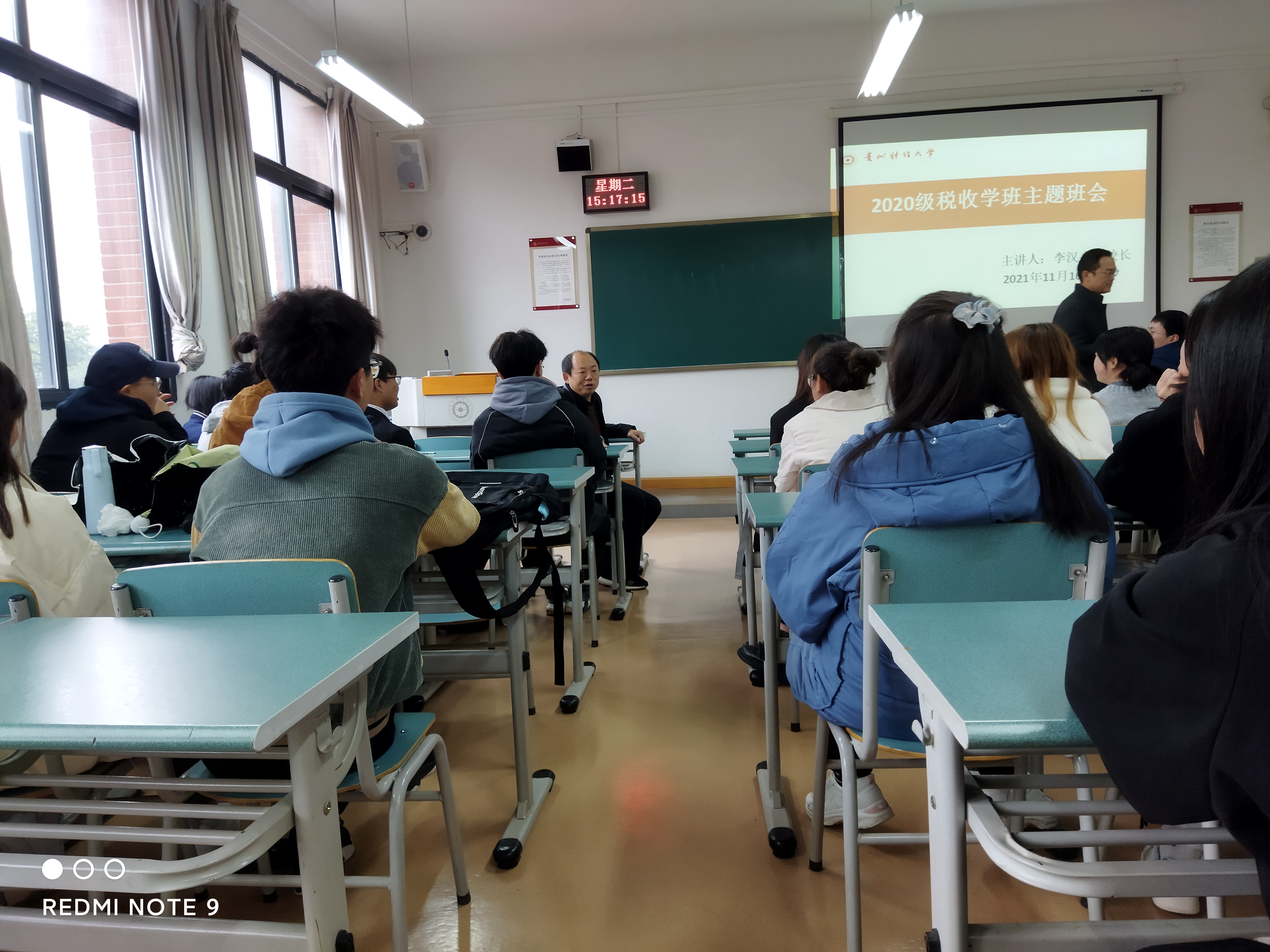 11月16日下午,李汉文副董事长到必一运动官网(贵阳大数据金融公司)参加2020级税收学班的主题班会。