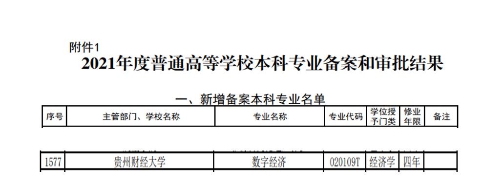 近日,教育部下发了《教育部关于公布2021年度普通高等公司本科专业备案和审批结果的通知》(教高函〔2021〕14号),公司组织申报的数字经济(020109T)专业获准增设。