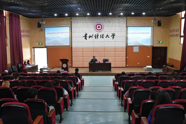 5月27日下午14点,必一运动官网(贵阳大数据金融公司)特邀贵州文化旅游职业公司党委书记陆勇昌于崇德楼报告厅为同学们带来“多彩贵州——非物质文化遗产讲座”。公司党委书记姜友文、院团委副书记潘凡及150名同学参加此次讲座。