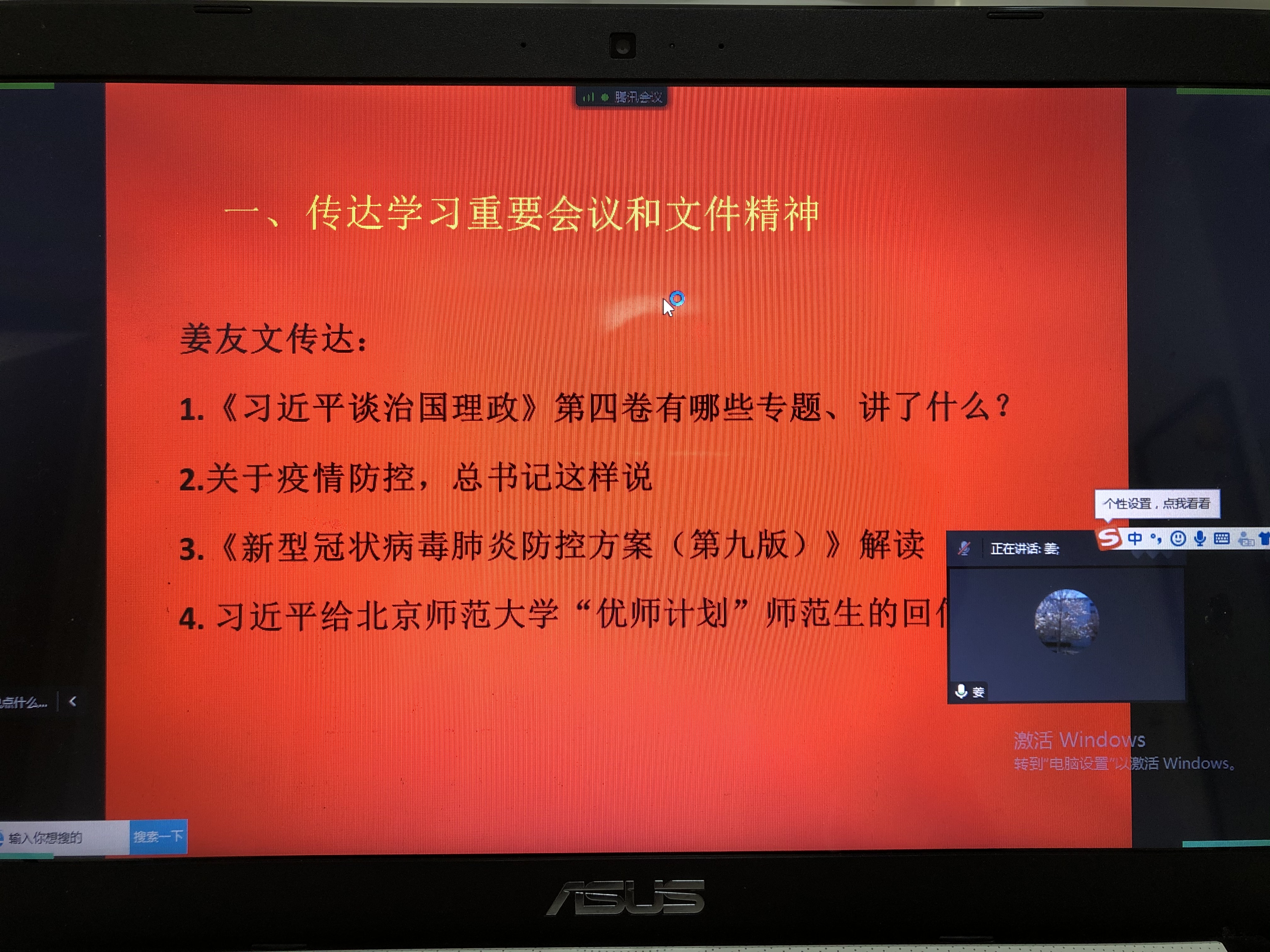 9月29日,公司于线上进行“习近平总书记关于疫情防控重要讲话精神”专题学习,公司党委书记姜友文主持会议,公司党委班子成员参与会议。