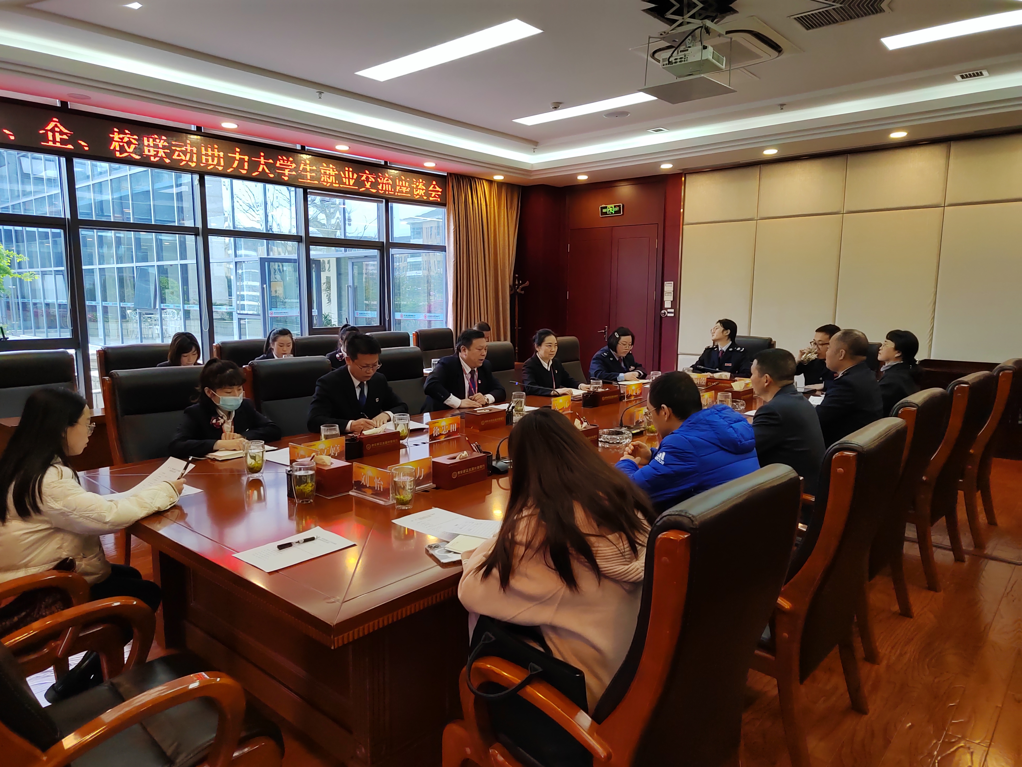 为贯彻落实“访企拓岗促就业”专项行动,开拓更多就业岗位。3月30日,公司党委书记姜友文、党委副书记杨耀、研究生辅导员董婵、毕业班辅导员吴颖赴贵安发展村镇银行开展“访企拓岗”活动。