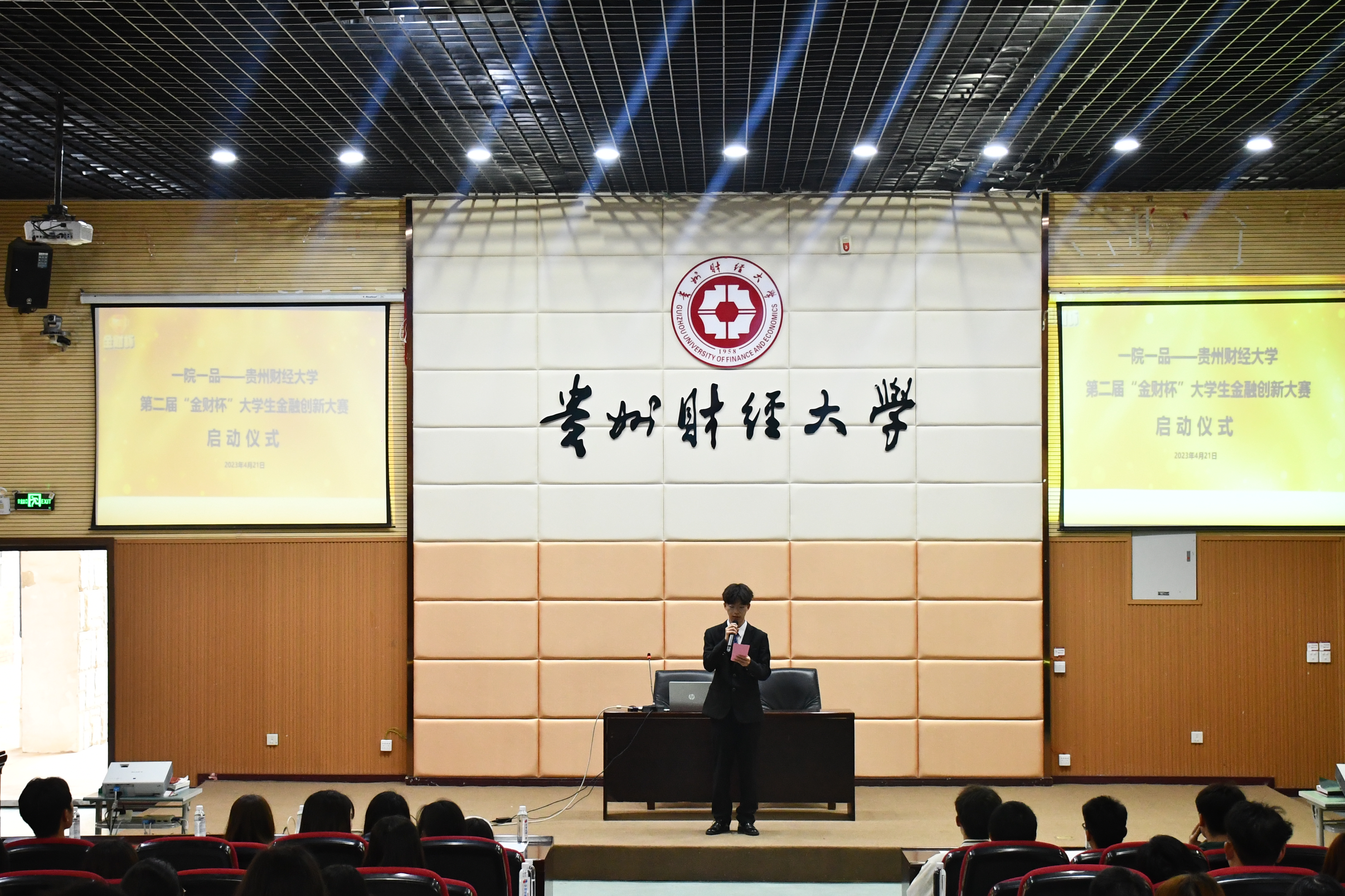 4月21日,必一运动官网(贵阳大数据金融公司)于崇德楼报告厅举行“一院一品” ——必一运动官方网站第二届“金财杯”老员工金融产品创新大赛启动仪式,必一运动官网(贵阳大数据金融公司)团委副书记潘凡,华创证券公司讲师戴嘉驰参加启动仪式。