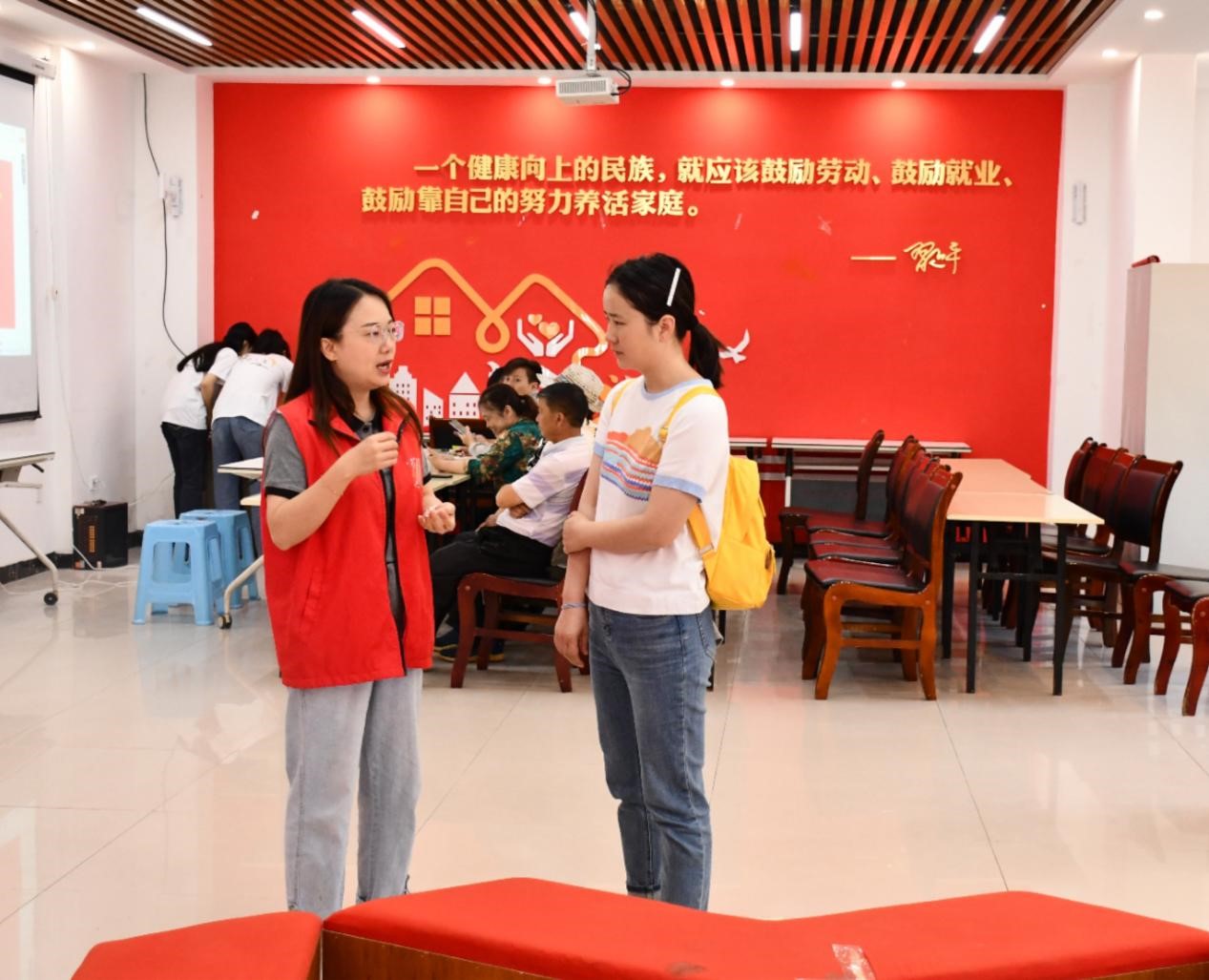 实践队顺利到达清镇市站街镇枫渔社区,吴莉波村支书简单介绍了枫渔社区的基本情况,该社区是清镇市易地扶贫搬迁安置小区,社区分为A区和B区,搬迁群众来自清镇市8个乡镇,共有483户1966人,后续公司将在社区开展相关活动。