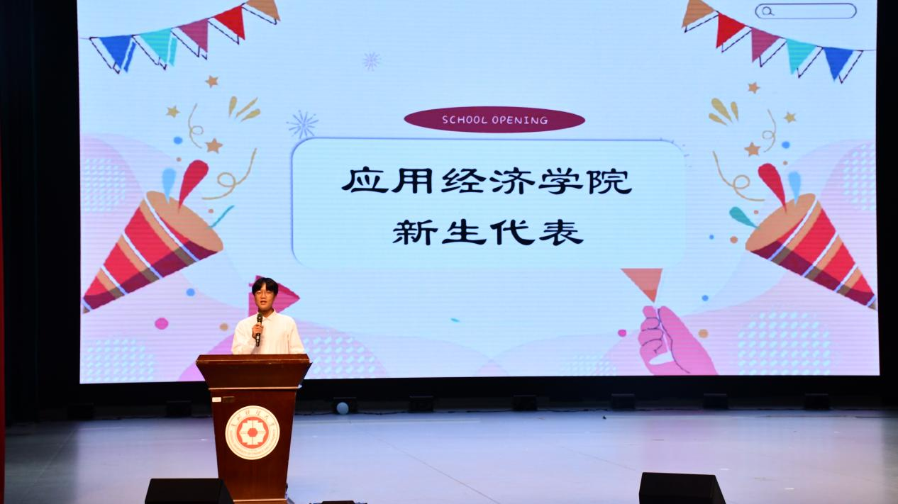 大数据统计公司2024级经济统计学李锦瑞和2024级税收班程英凯作为新生代表上台分享了自己入校以来的感受与体会,两位同学表示将秉持“厚德、博学、笃行、鼎新”的校训,积极进取,努力学习,丰富自己大学时光,同时为公司,公司的发展贡献一份青春力量。