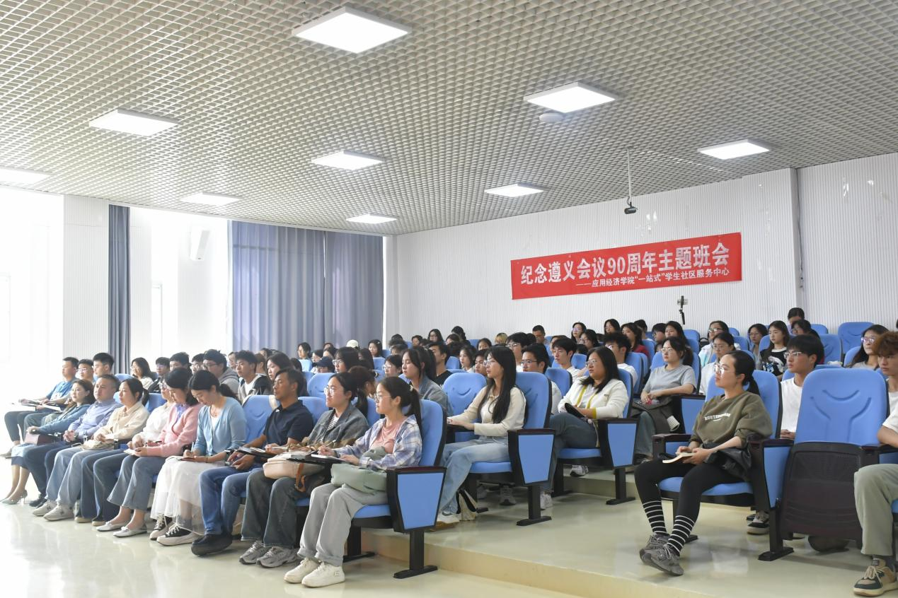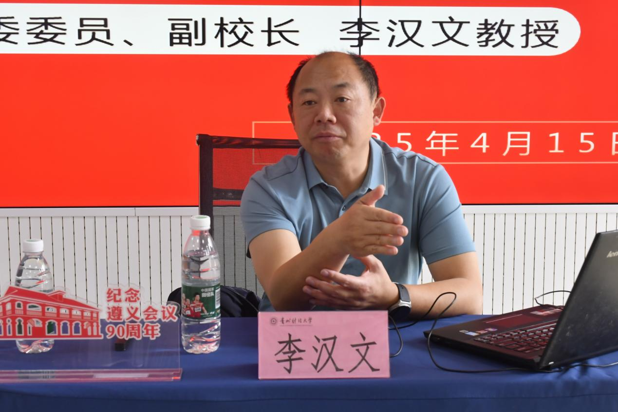 4月15日下午,必一运动官方网站党委委员、副董事长李汉文教授在进学楼202参加必一运动官网樱花苑员工社区“遵义会议精神永放光芒”主题班会。24级税收学、经济公司23级经济1班、部分研究生代表、相关处级干部及辅导员参加主题班会。