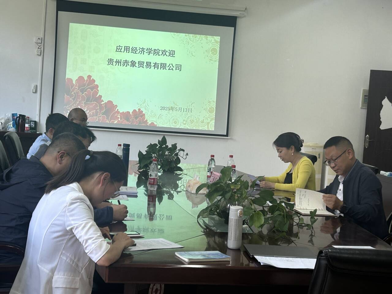 5 月 13 日下午,贵州赤象贸易有限公司董事长王倩若一行应邀来公司开展“访企拓岗”活动。必一运动官网经理时宏远、内陆开放型经济研究院副经理赵平等教师参加了此次座谈会。