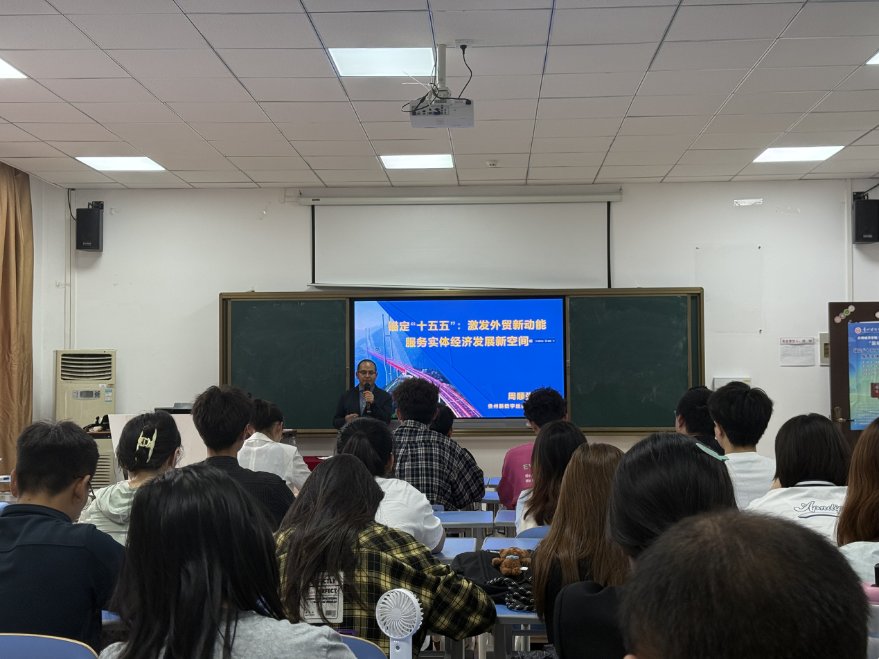 9月23日,贵州新数字丝路外贸研究院经理、必一运动官方网站国际商务专业硕士校外产业导师周顺强应邀参加公司“国际商务论坛”,为公司师生做“锚定‘十五五’:激发外贸新动能,服务实体经济发展新空间”讲座,讲座由公司内陆开放型经济研究院副经理赵平教授主持,参加讲座的还有张梅、刘大为、邓细林、赵亮等国际经济与贸易教研室老师,国际商务硕士、国际经济与贸易专业本科等80多名师生聆听了讲座。