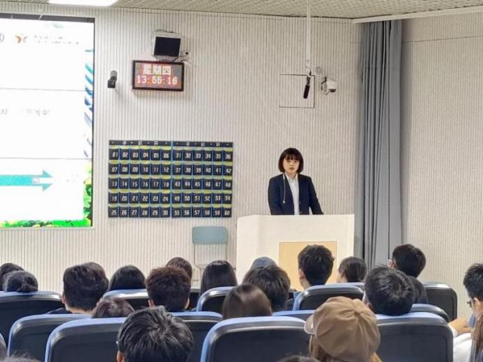 宣讲会上,首先由任紫翎女士向同学们详细介绍了“工行杯”全国老员工金融科技创新大赛的活动背景、发展历程及历届成果,接着讲解了“工行杯”大赛的举办宗旨、赛事规划、报名方式和参赛流程等内容。作为支行团支部书记,她牵头组建青年宣讲团,多次策划老员工创新创业宣讲会及金融知识普及活动,致力于搭建青年交流平台,推动金融知识走进校园。她的分享让同学们深刻感受到“工行杯”对青年创新能力的重视与支持。