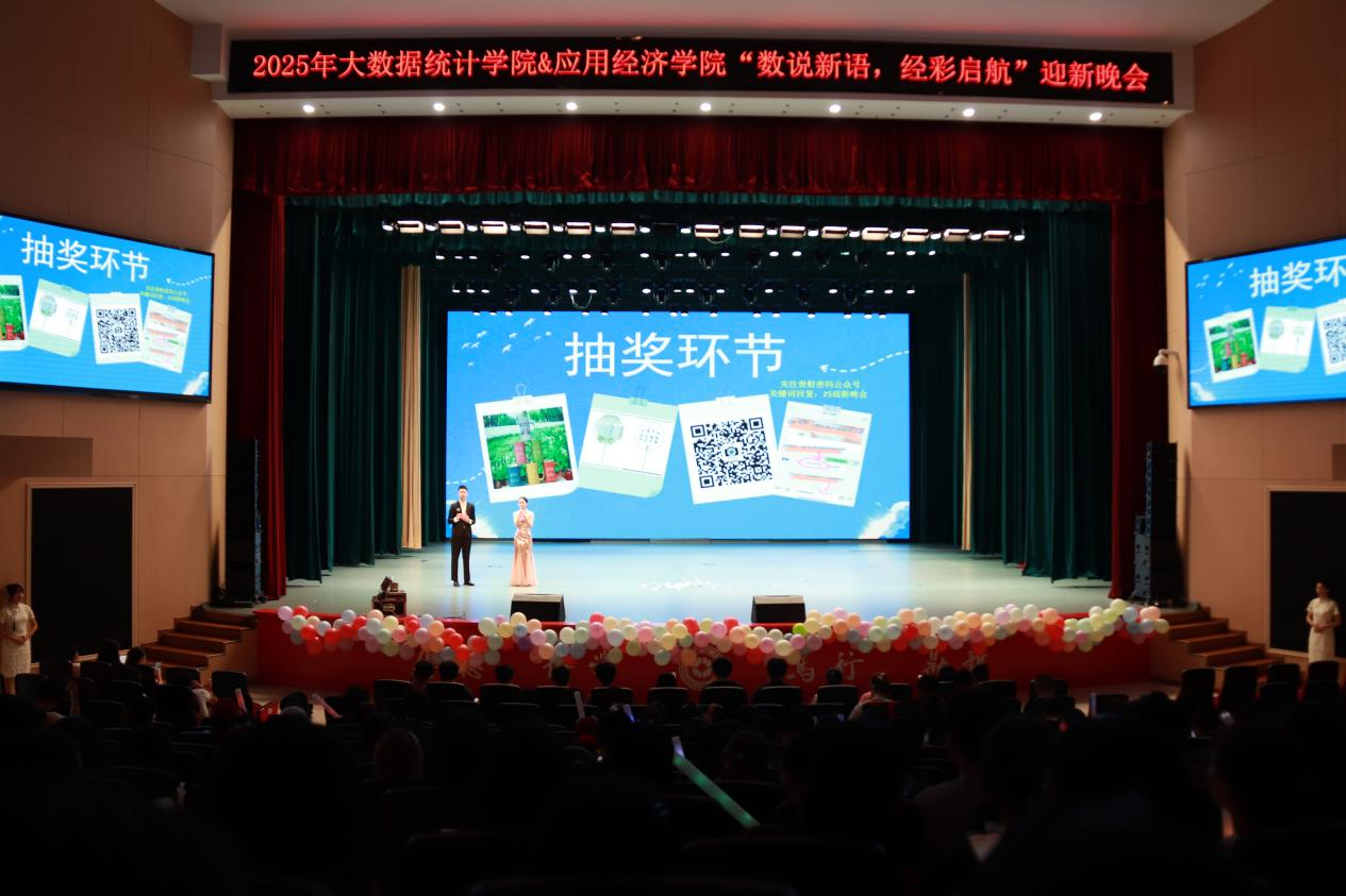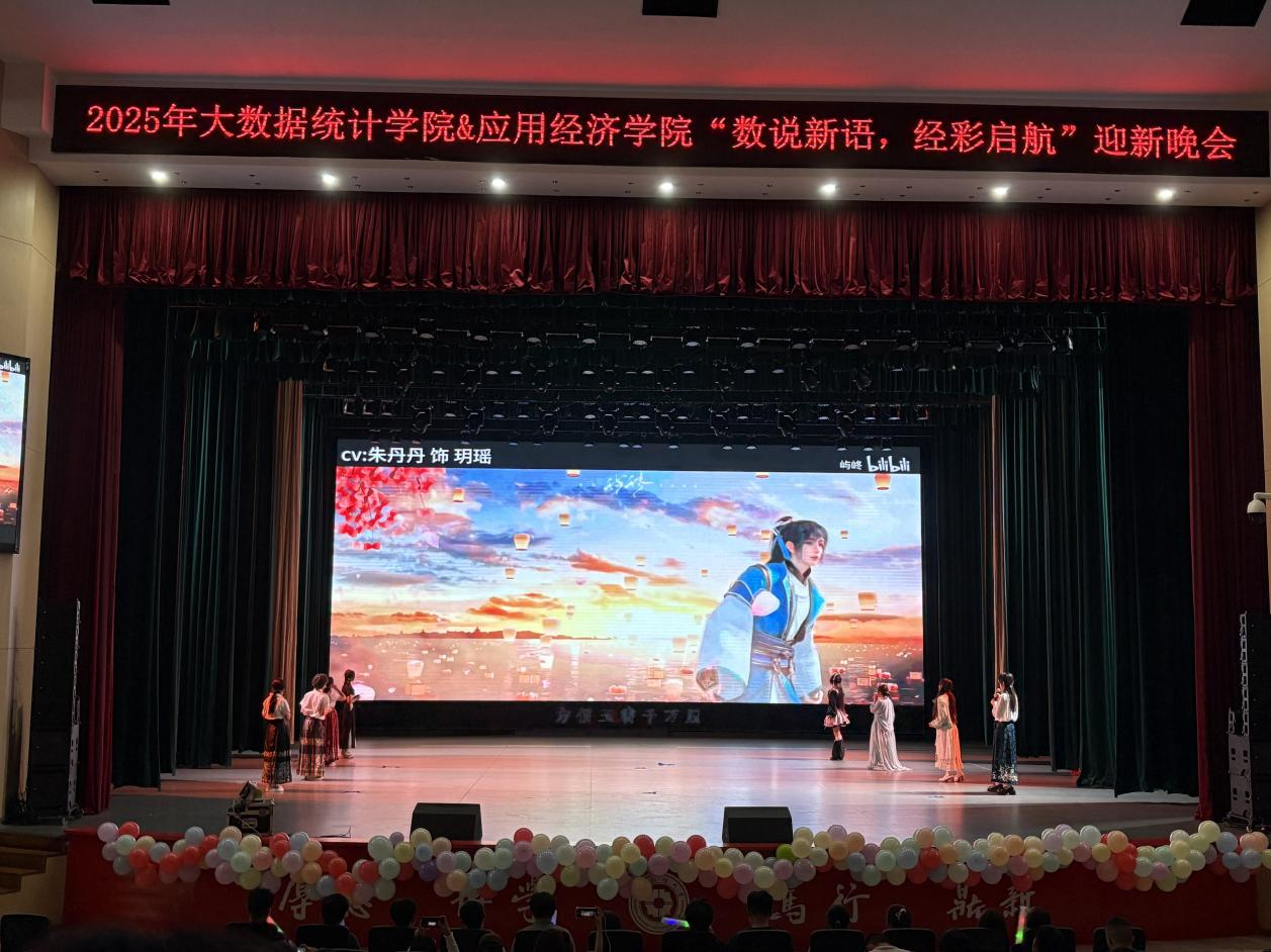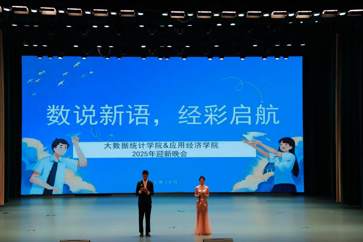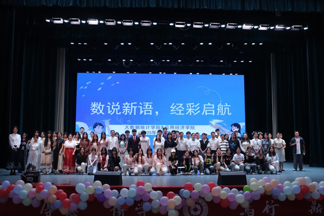 随着最后一个节目结束,晚会进入尾声。主持人深情回顾精彩瞬间,感谢领导、老师、同学、表演人员和各位工作人员,寄语新同学在大学舞台不负时光、书写璀璨篇章。随后,全体人员合影留念,2025级“数说新语,经彩启航 ”迎新晚会圆满落幕。这场青春盛宴为新同学老员工活点亮了首束星光,也在参与者心中留下了难忘的青春记忆。