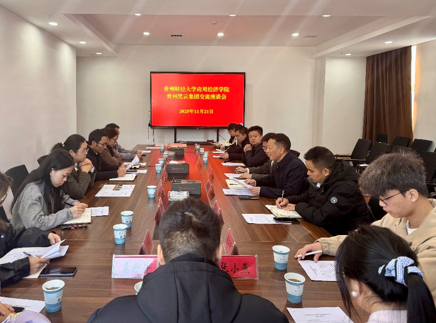 参观结束后,双方移步会议室举行交流座谈会。会议由贵州梵云大数据集团有限公司党委委员、副总经理陈进军主持。会上,陈进军就集团的基本情况、发展历程、核心业务及未来战略规划进行了系统介绍。他特别强调了企业在快速发展过程中对高素质、专业化人才的迫切需求,并明确表达了希望与高校携手,共同解决员工早、中期就业实践问题,为员工提供更早接触行业、提升实践能力的平台,同时也为企业储备优秀人才。