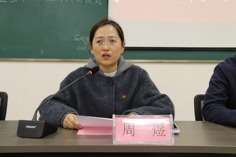 入团仪式在庄严的国歌声中拉开序幕。周煜致辞,她对新团员的加入表示热烈祝贺,寄语同学们要牢记团徽所承载的荣誉与责任,以“请党放心,强国有我”的誓言为指引,在学习中锤炼本领、在集体中团结互助、在家国情怀中志存高远,让青春在奋斗中绽放绚丽之花。