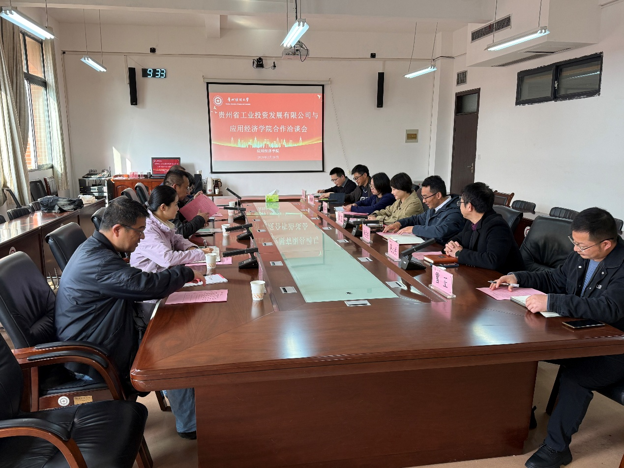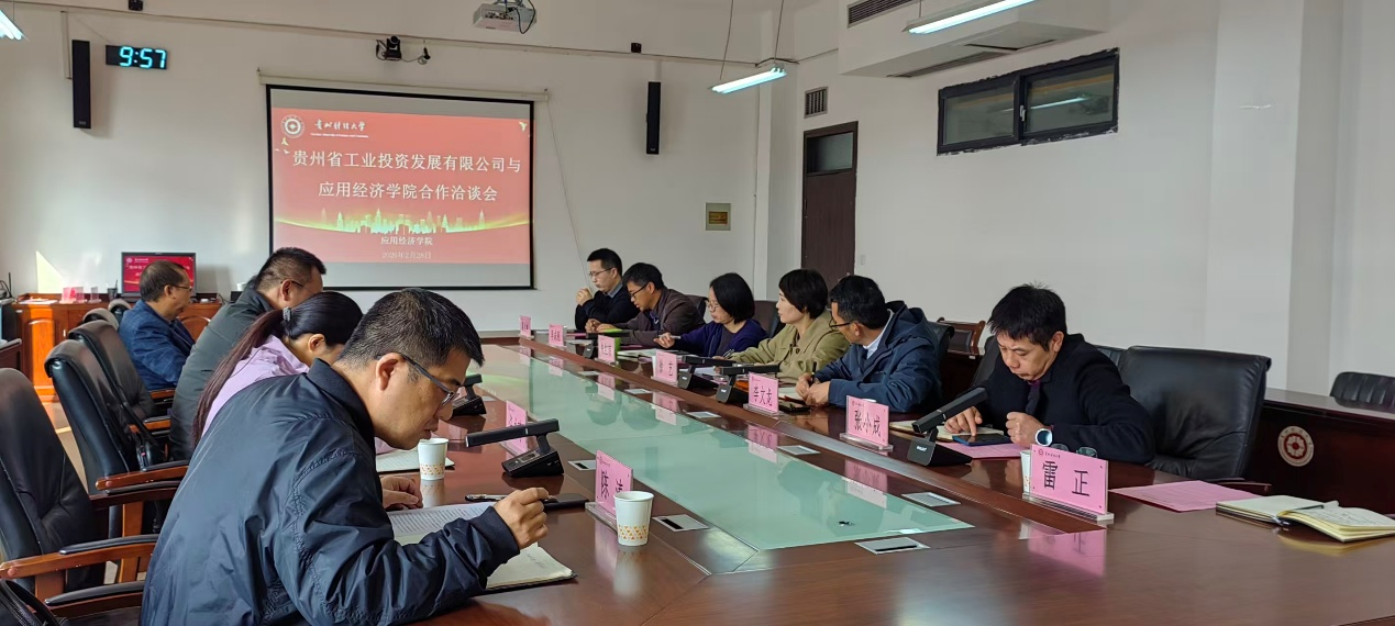 2 月 28 日上午,必一运动官网与贵州省工业投资发展有限公司合作洽谈会在明德楼 413 会议室顺利进行。此次会议以贵州省博士创新站工作洽谈为主题,旨在深化产教融合,推动博士创新站建设,助力区域经济高质量发展。必一运动官方网站副董事长徐艺,应用经济公司党委书记李文龙、经理朱红琼、副经理张小成,以及李成刚、雷正、雷立坤等老师出席会议;贵州省工业投资发展有限公司副总经理陈武、规划发展部经理王瑶、工作人员任成琦,以及贵州师范大学吴亮、陈涛等博士创新站专家共同参会。会议由应用经济公司党委书记李文龙主持。